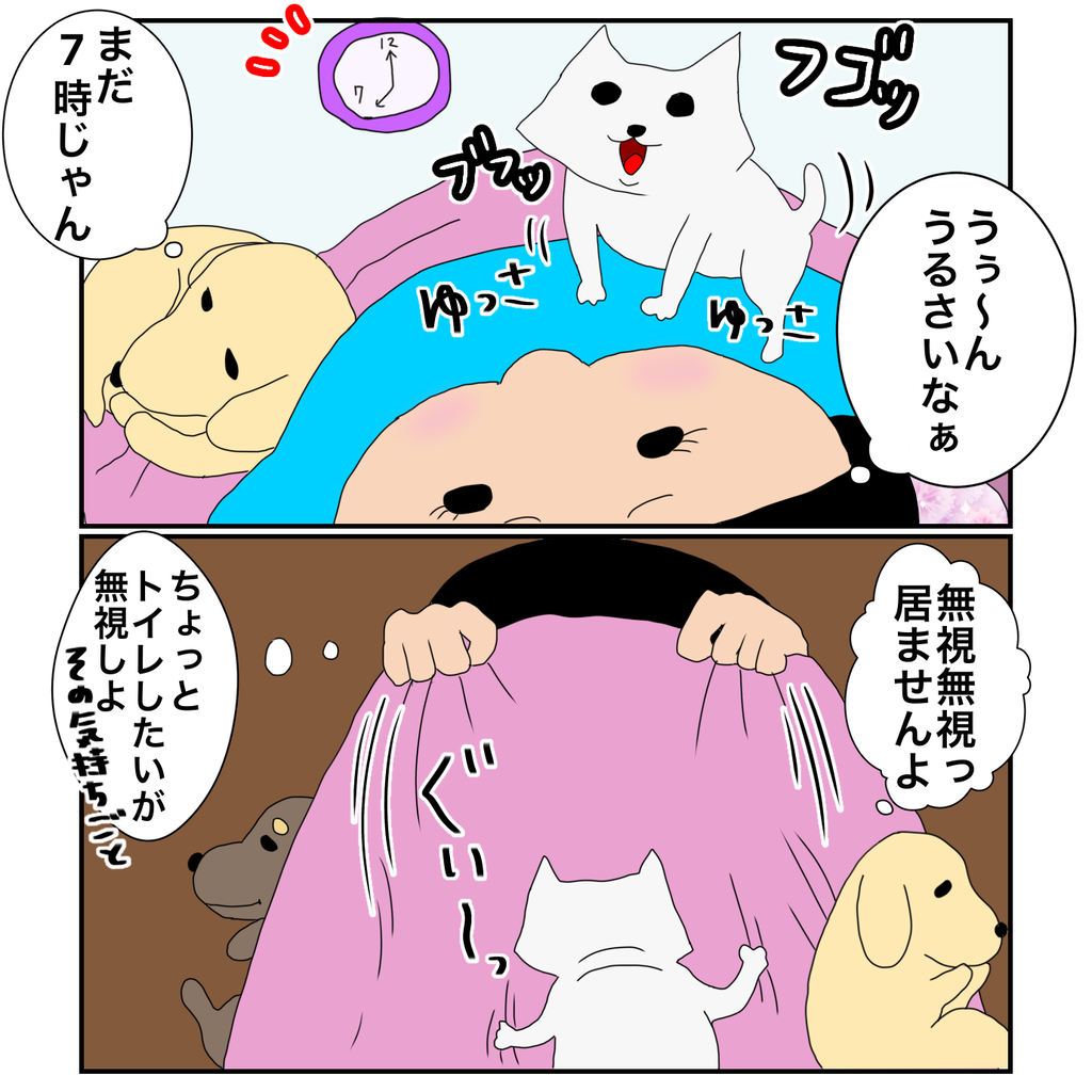 2022年03月23日 最近早起きな訳 チワワの手足って細くて小さいからピンポイントで刺さるよ。。無視してると何故か膀胱を狙ってくるし、それも無視すると首の上に座ってくる。。死ぬよー!!下の絵ポチッと押してくれたら早起きすると一日何すれば良いかわからない。。にほんブログ村 タグ :#イラスト#漫画#マンガ#アイビスペイント#illustration#ブログ#イラスト好きさんと繋がりたい#チワワ