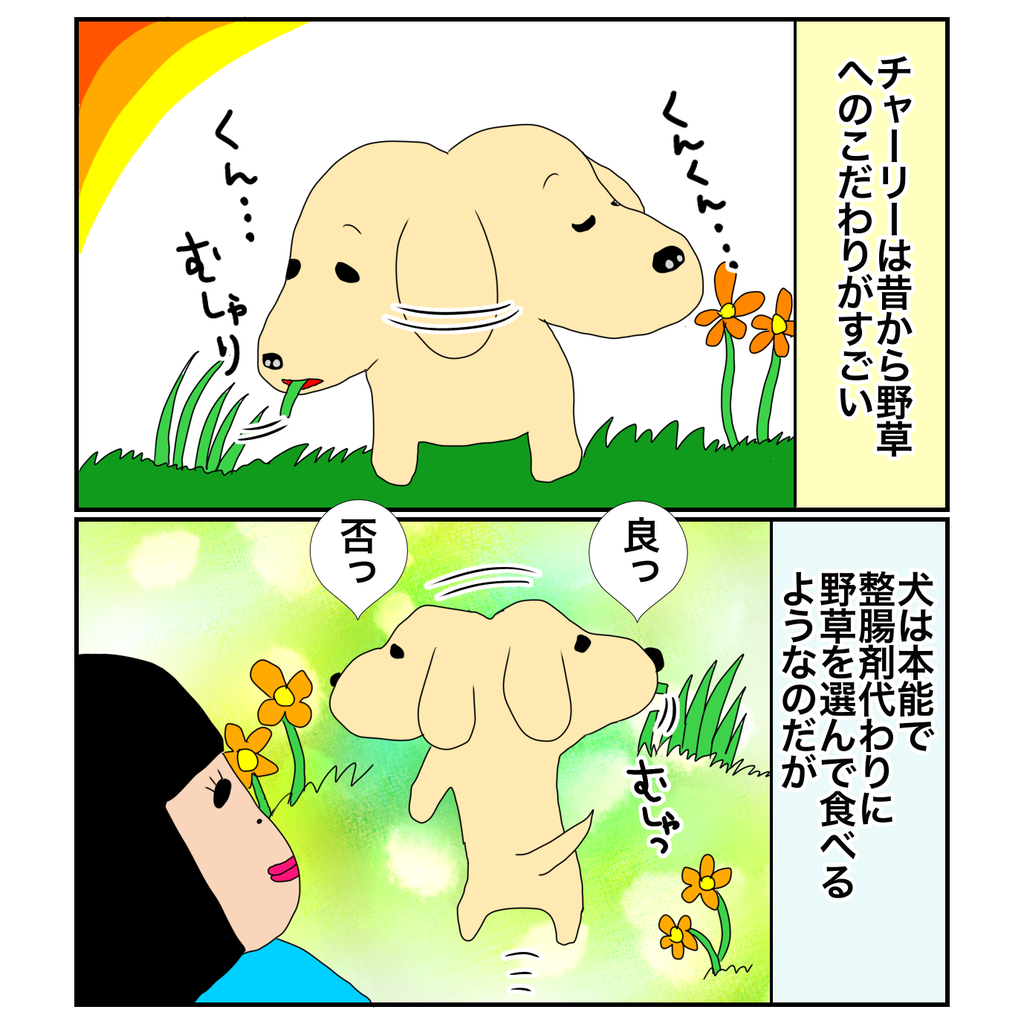 2022年04月27日 野草研究家 100年に一度しか咲かない花なのにみたいな顔してた。。そういや普段の食べ物へのこだわりとかもすごいな。。それはただのワガママか!一度チャーリーが研究始めるとめちゃ長いから頼むから夏は勘弁してくれっ!下の絵ポチッと押してくれたら得意げな顔可愛いのよにほんブログ村 タグ :#イラスト#漫画#マンガ#アイビスペイント#illustration#ブログ#イラスト好きさんと繋がりたい#ダックス